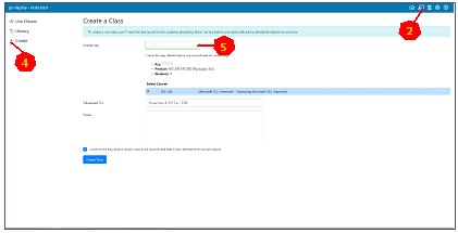 En cliquant sur “Create” (4) le formateur pourra créer une instance de stage pour chaque atelier utilisé durant la formation (en faire plusieurs et utiliser les “Notes” pour différencier si plusieurs codes commandés). C’est le seul endroit ou le formateur aura à rentrer le code (5) mentionné précédemment.